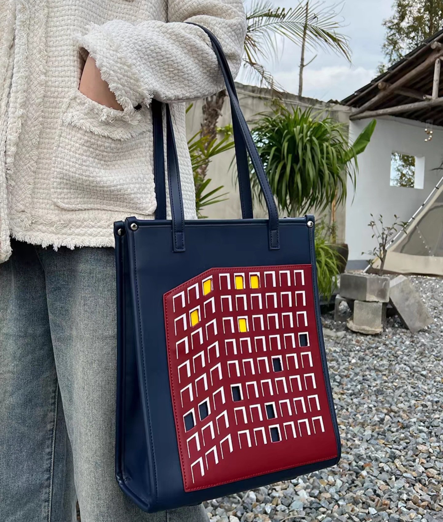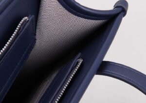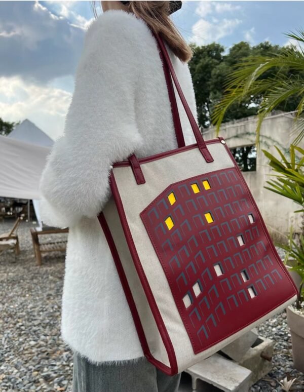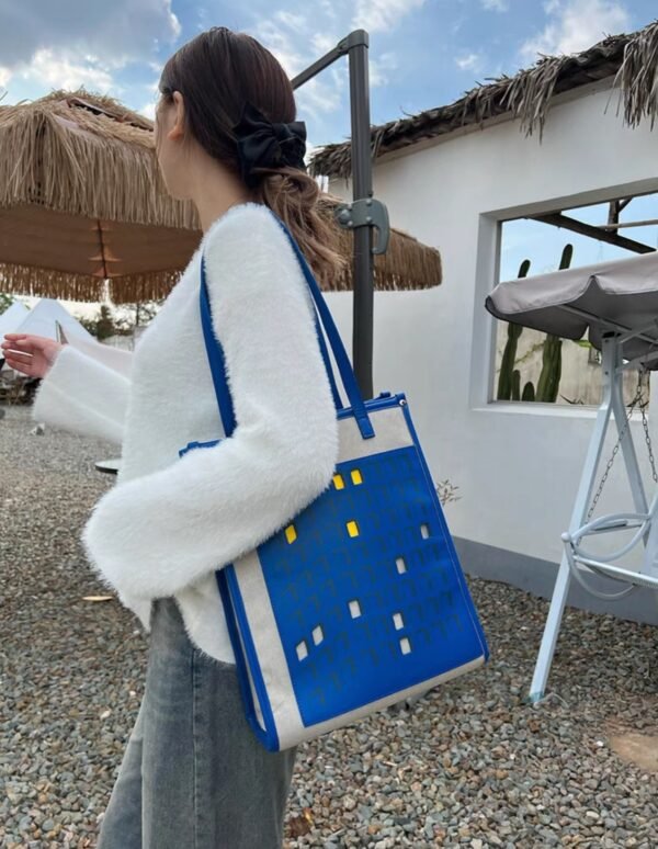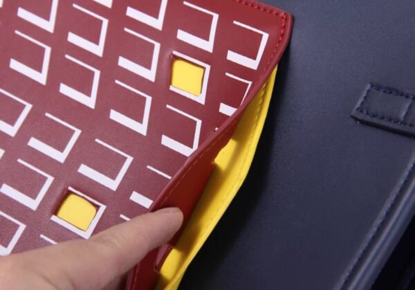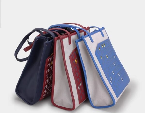 The bag’s design boasts a striking juxtaposition of contrasting colors. This feature not only adds a dynamic visual appeal but also makes it an eye-catching accessory. The deliberate use of contrasting hues ensures that the bag stands out, making a bold statement wherever you go.