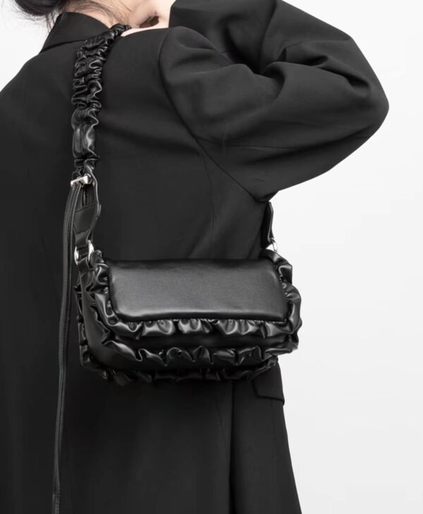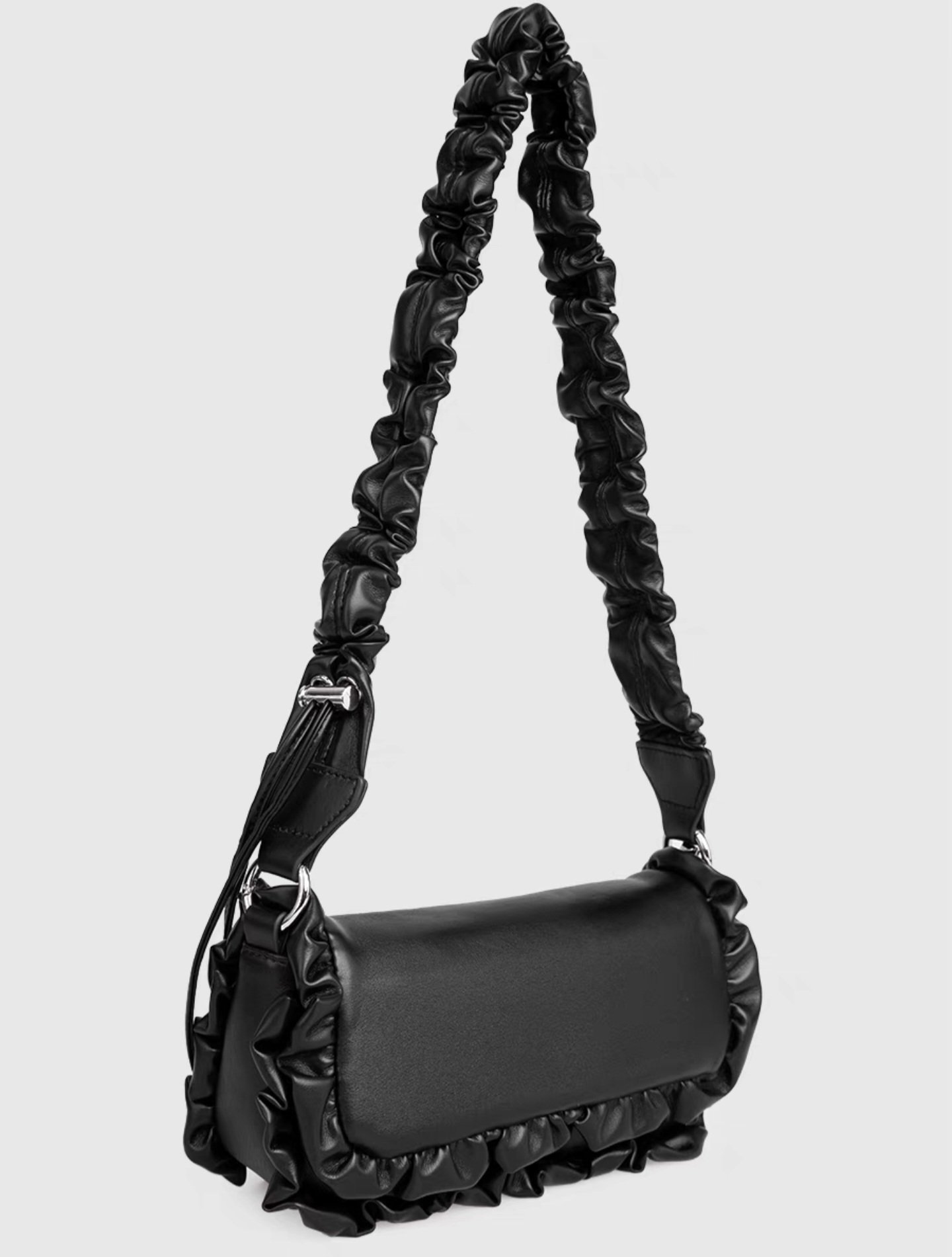 This versatile crossbody bag is designed to meet both style and practicality. The niche design features a unique pleated trim that adds a touch of elegance and frills around the edges, making it a perfect accessory for any outfit. Made from high-quality PU artificial leather, this crossbody bag offers a soft feel while ensuring durability. It is the ideal choice for those looking for both comfort and style in one package.